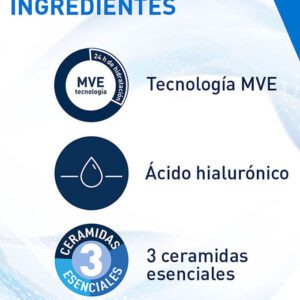 - Desarrollada con dermatólogos y adecuada para la piel seca y muy seca del rostro y cuerpo, esta crema hidratante rica, no grasa y de rápida absorción, cuenta con nuestra tecnología patentada MVE Delivery Technology para liberar un flujo constante de ingredientes hidratantes durante todo el día y la noche.