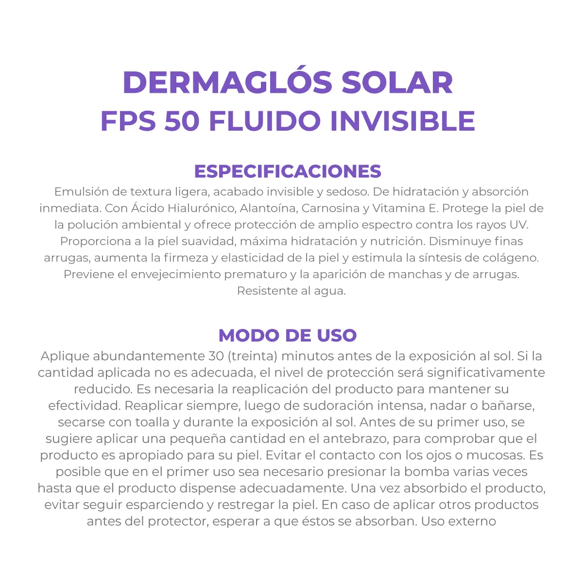 DERMAGLÓS SOLAR FACIAL FLUIDO SIN COLOR FPS50 50gr